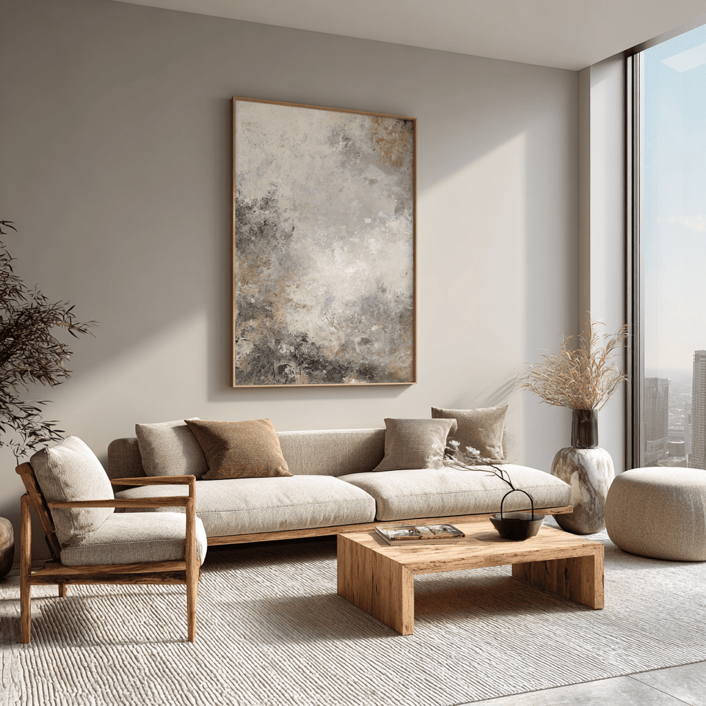 Abstract canvas art can instantly transform an organic modern living room. It introduces a playful yet sophisticated spirit through colors and shapes. This type of artwork is ideal for adding personality to your walls without overwhelming the minimalist tone.