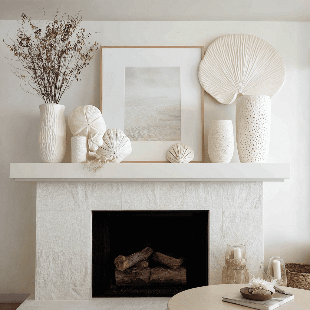 For a unique twist, try a driftwood sculpture or a collection of framed starfish. These natural elements bring the beach indoors and create a relaxing atmosphere around your fireplace.
