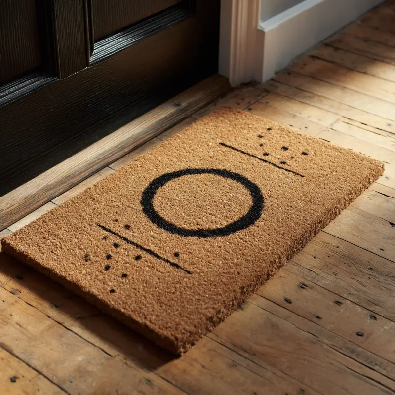 [Image: A cool, modern doormat with a simple graphic or witty phrase]