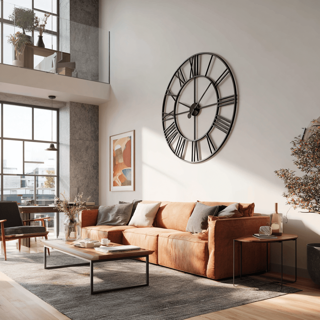 For added impact, select a clock with an interesting frame or unique materials like reclaimed wood or metal. The right oversized clock can transform a bland wall into an eye-catching feature.