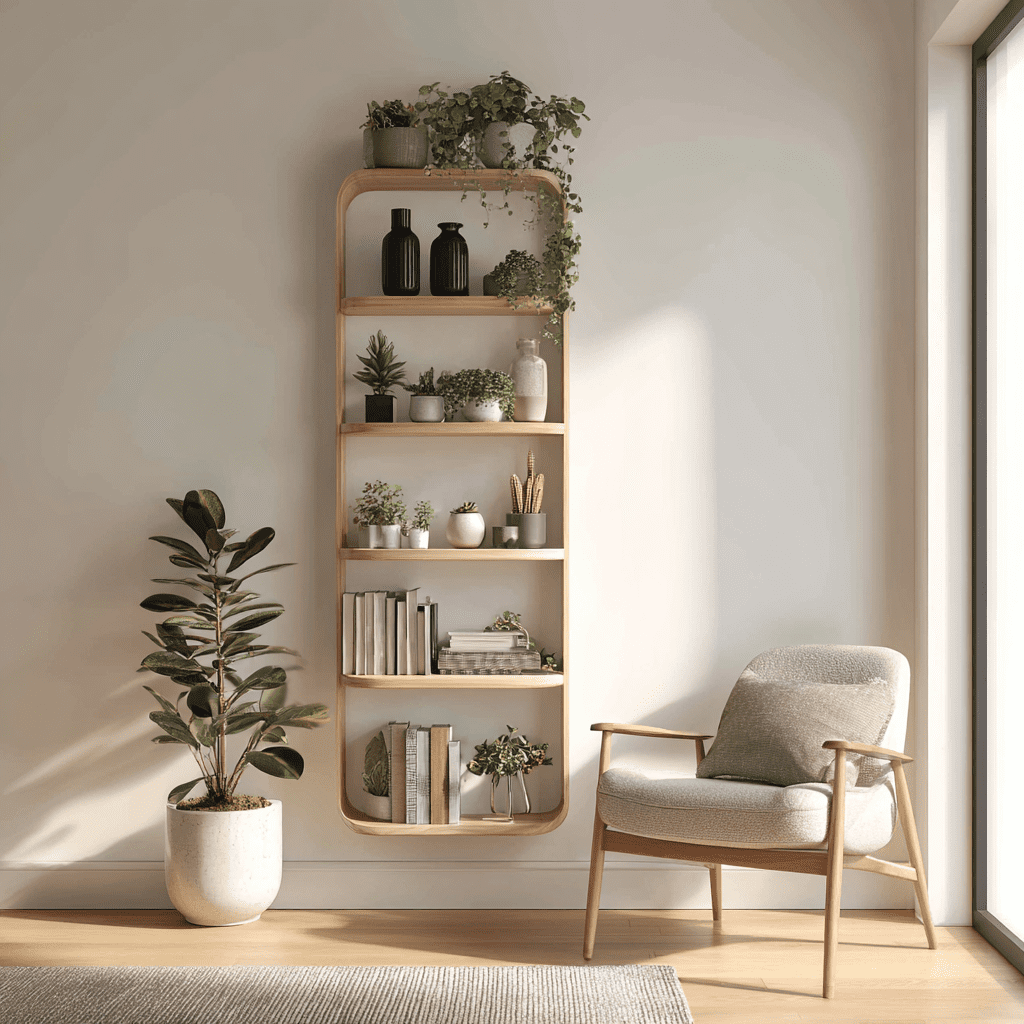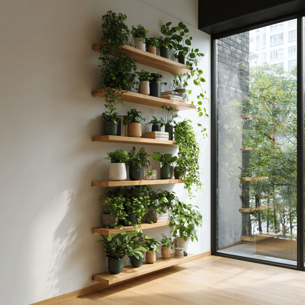 Water-resistant materials like bamboo or treated wood work well for plant shelves. Make sure to use proper wall anchors for safety. Floating plant shelves turn blank walls into lively, green displays.