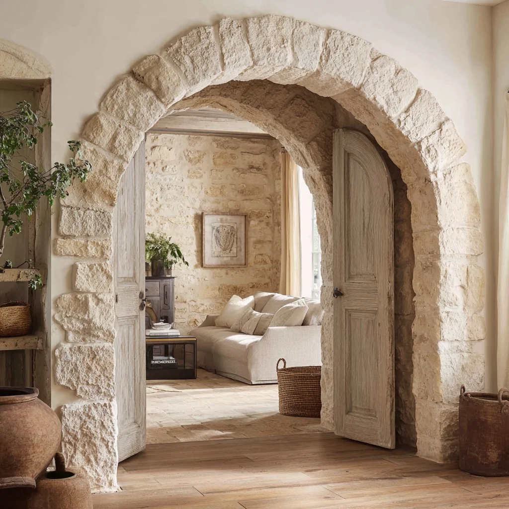 These arches often feature in entryways, creating a grand and welcoming atmosphere. Inside the home, they anchor spaces, designating transitions between rooms with elegance.