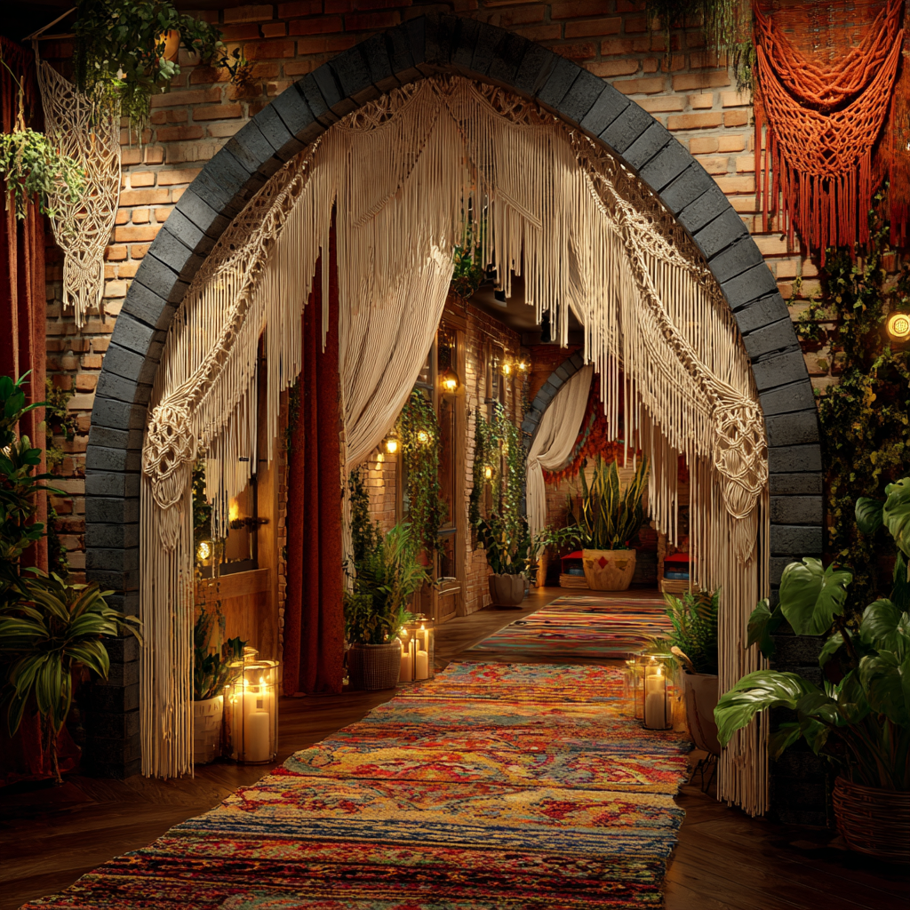 Bohemian archways create an eclectic and vibrant atmosphere in a home. They can be adorned with colorful textiles, like hanging tapestries or macrame, which add a boho-chic flair.