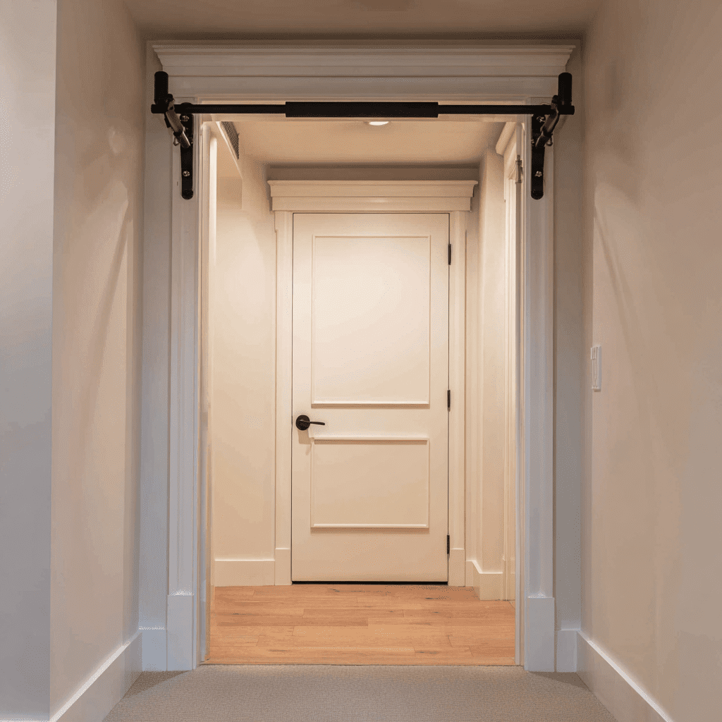 If you’re limited on ceiling height, a door-frame pull-up bar is genius. It takes no room and still gives you upper-body strength options.