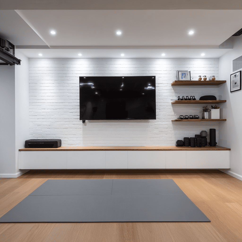 Mount a smart TV to stream workouts, track routines, or follow apps. It turns your basement gym into an interactive studio.