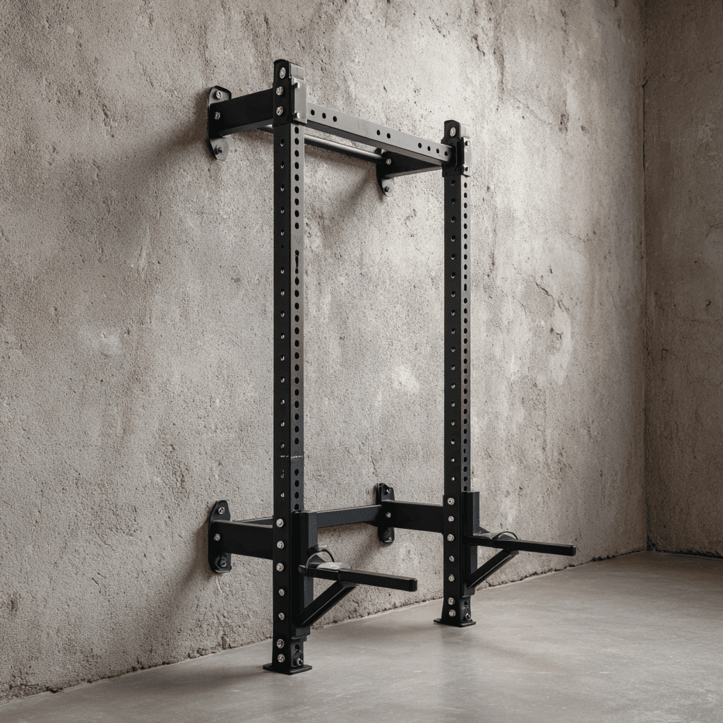 A foldable squat rack gives you heavy-lifting ability even in narrow basements. It folds almost flat and still holds plenty of weight.