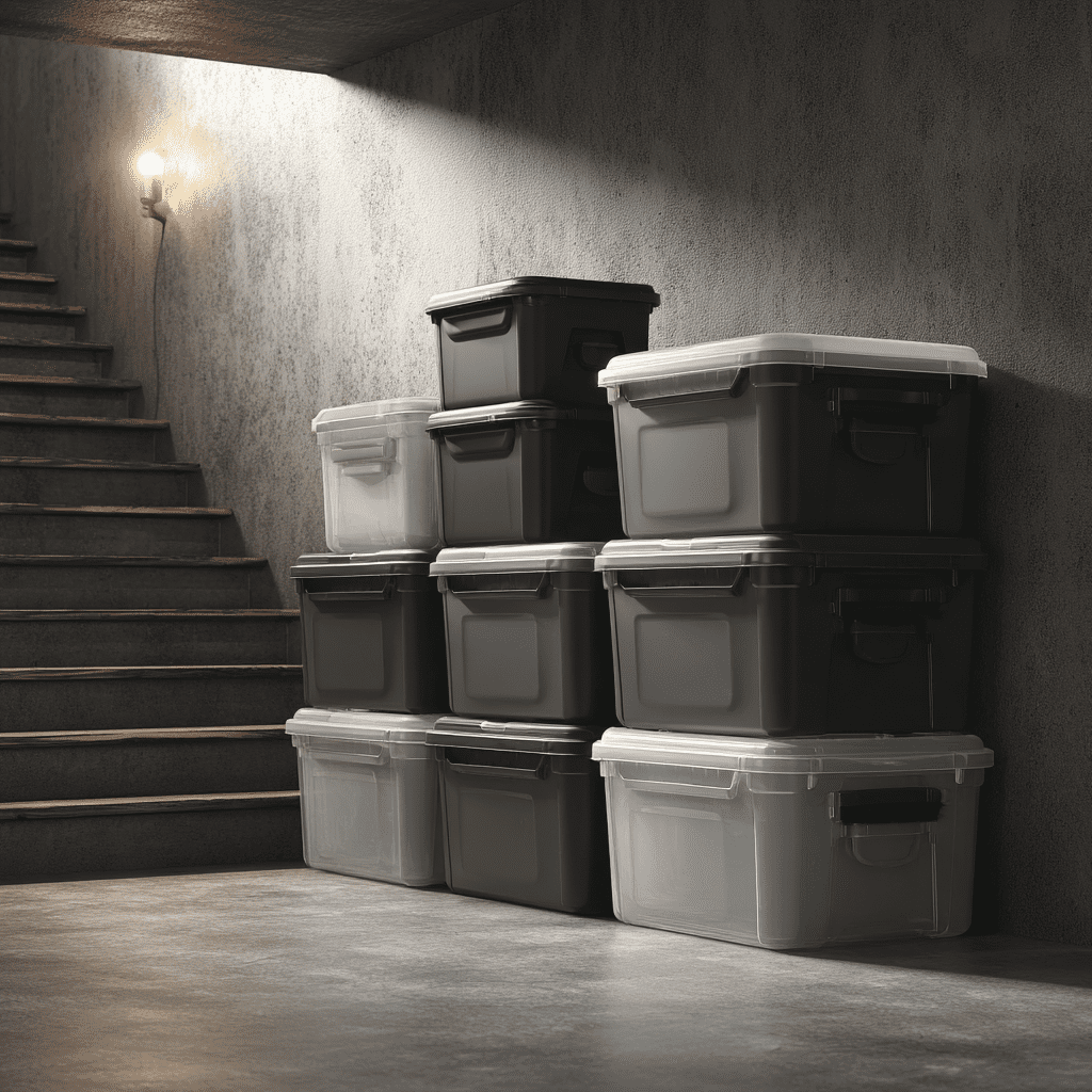 Sturdy plastic bins protect your belongings from dust, moisture, and the occasional basement surprise. Stack them neatly, label them, and suddenly your basement feels intentional instead of chaotic.