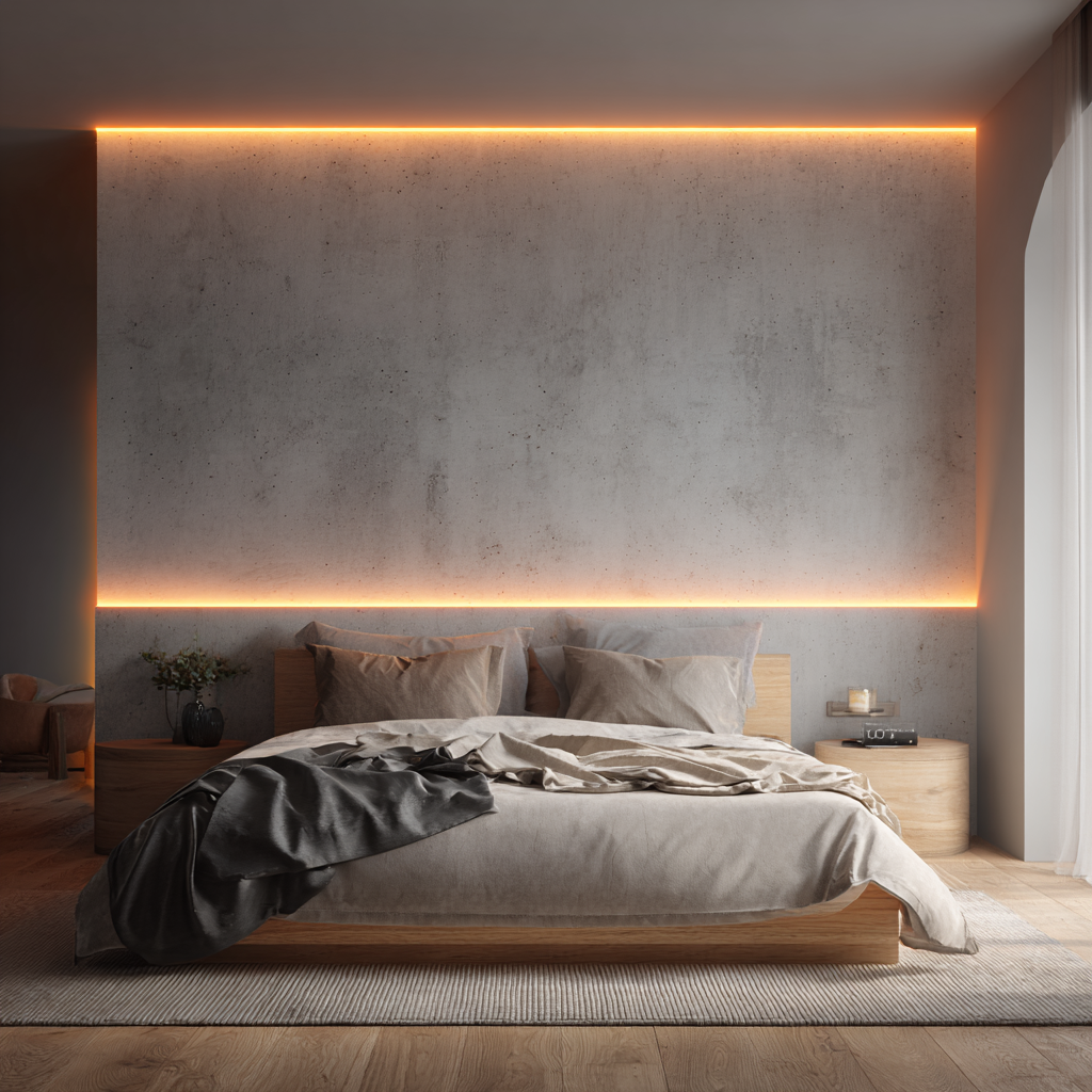 Corner glow lighting uses hidden LEDs where the accent wall meets the corner, creating a sleek beam of light that stretches from floor to ceiling. It makes the room feel taller and adds a futuristic touch you’ll love.