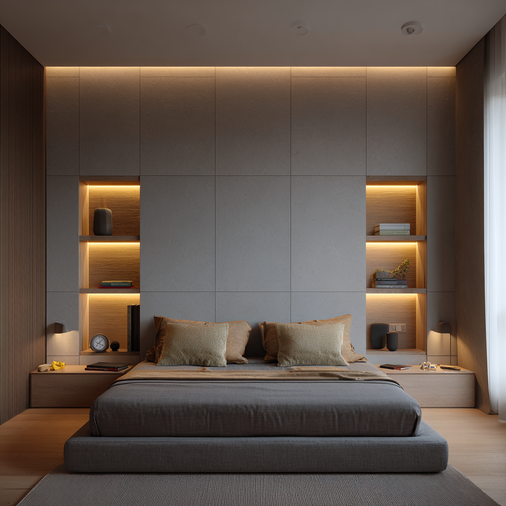 Recessed wall niches offer built-in pockets of light that instantly make a bedroom feel customized. Imagine little illuminated cubbies that highlight your favorite items. Cute, right?