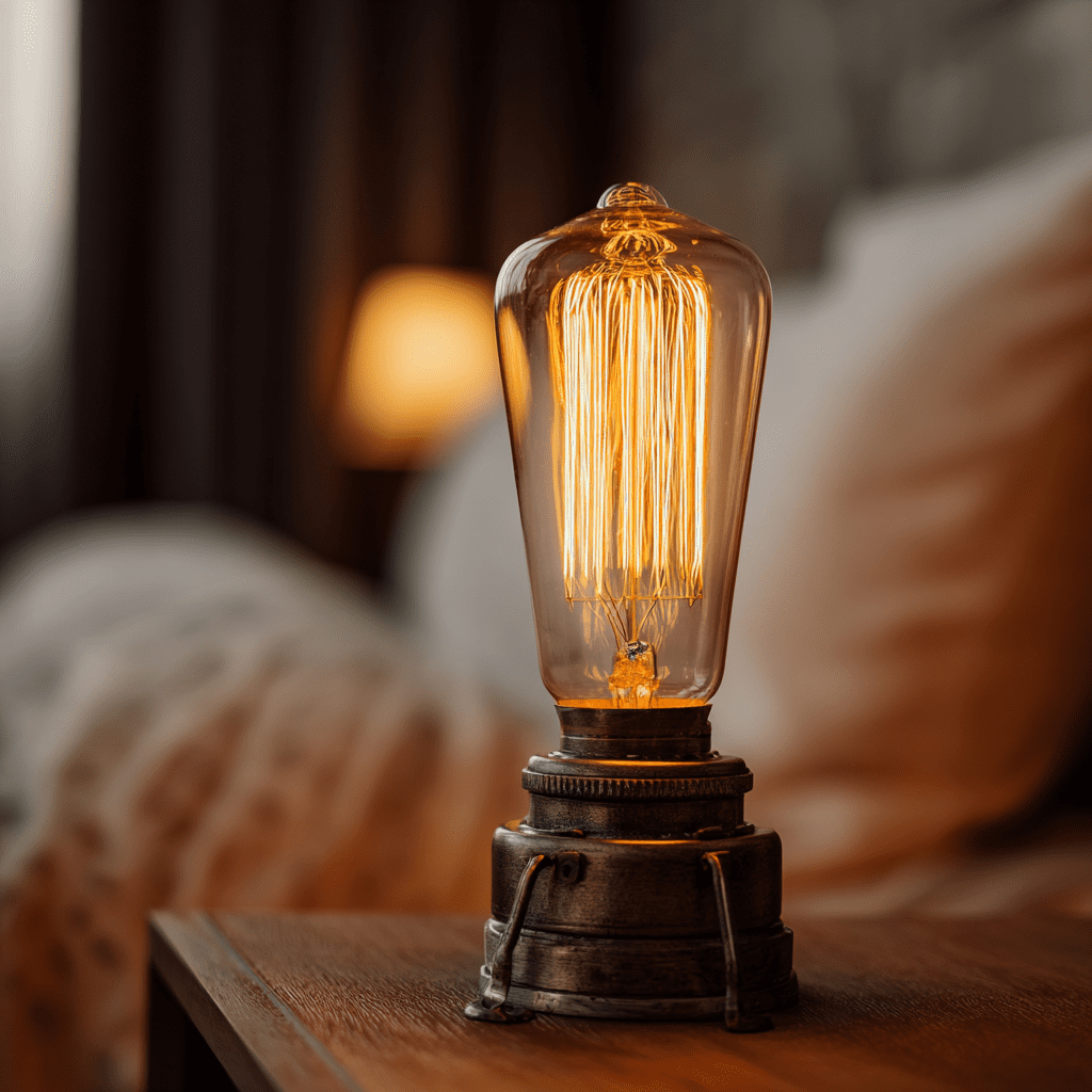If your bedroom feels a little bland, this lamp brings instant character. Edison bulbs give off a warm, amber glow that feels cozy and nostalgic.