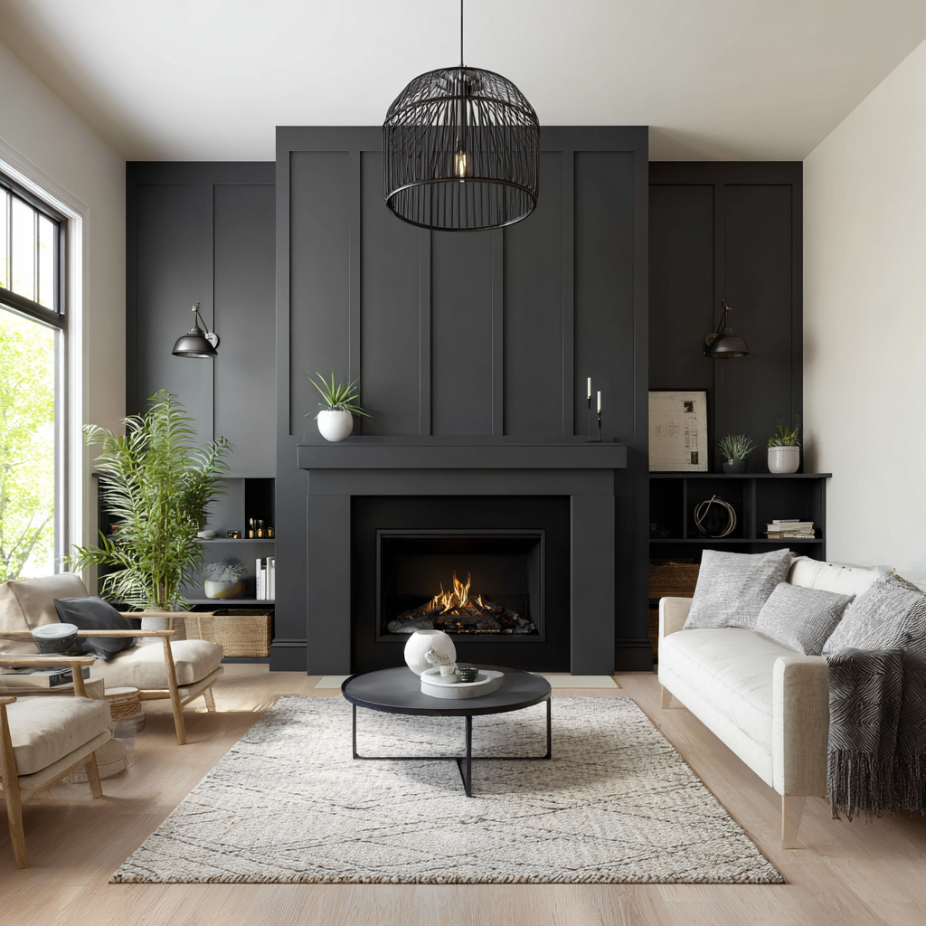 A black board and batten fireplace brings a sleek, modern look to your living space. This bold choice creates a striking focal point in any room. The dark color adds depth and drama, making your fireplace stand out.