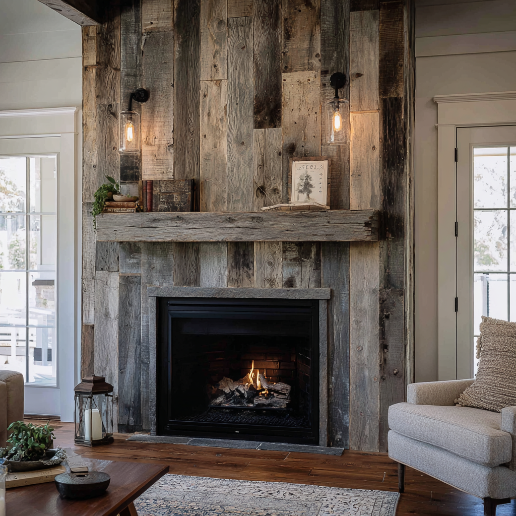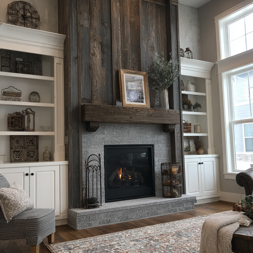 Weathered wood adds rustic appeal to board and batten fireplaces. You can achieve this look with reclaimed barn wood or new wood treated to appear aged. The natural grain and worn texture create visual interest.