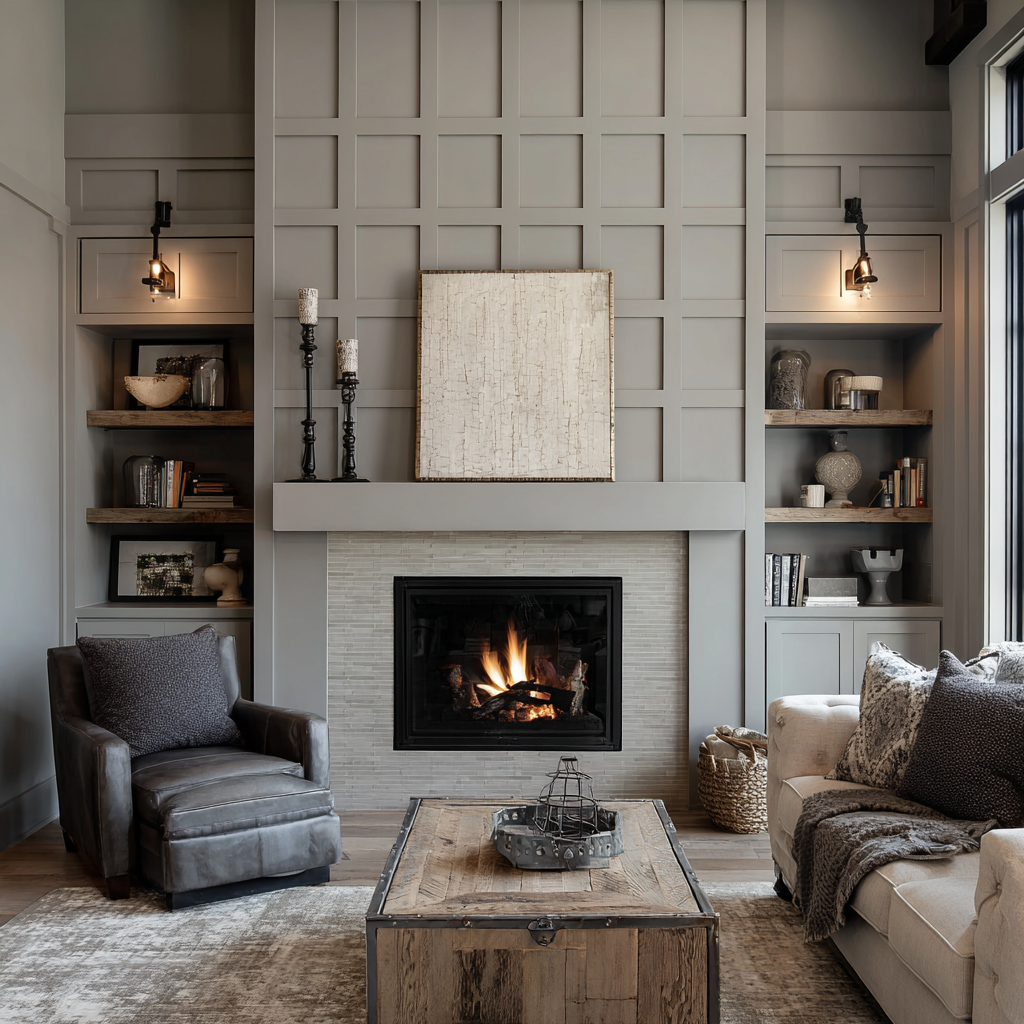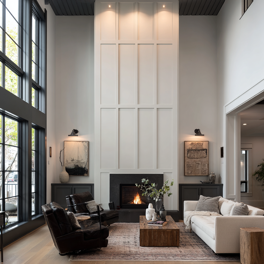 Choose a light color for the board and batten, and paint the walls a complementary neutral tone. Add warmth with natural wood accents or a stone hearth. This approach lets your fireplace blend seamlessly with the room while still being a focal point.