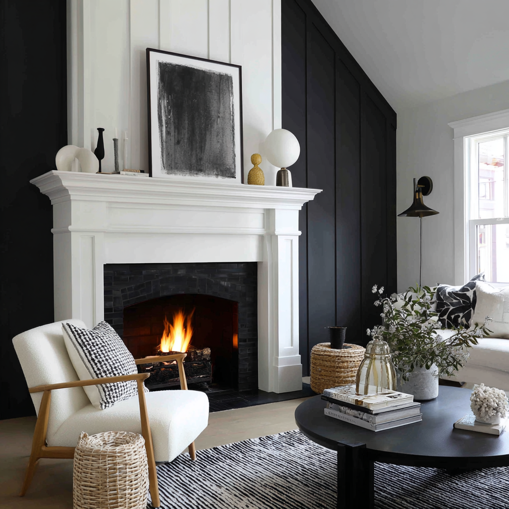 Try pairing dark trim with a white mantel for extra impact. The dark color will draw eyes to your fireplace, making it a true focal point. Remember to use a heat-resistant paint for any areas close to the fire.