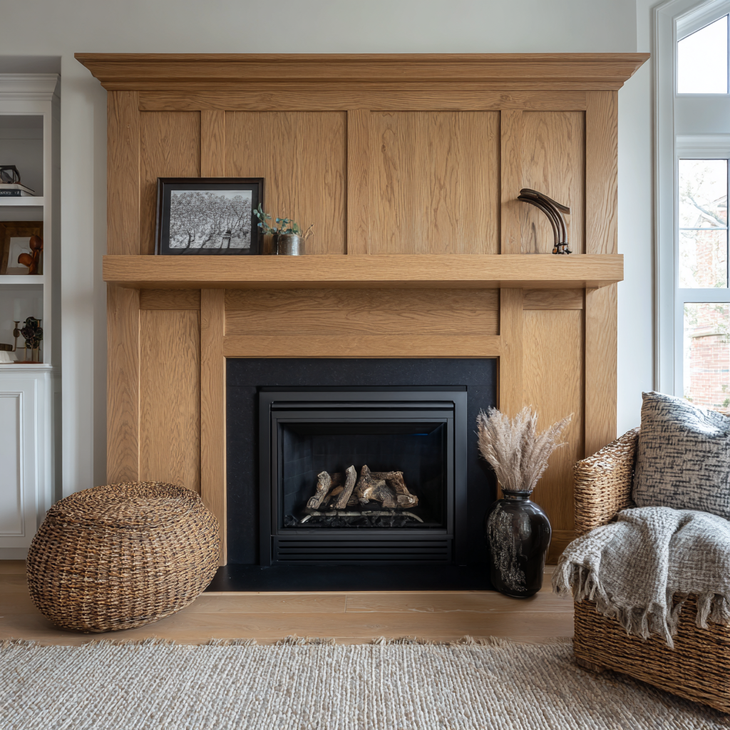 Oak paneling adds a classic touch to your board and batten fireplace. You can choose a light natural finish for a bright, airy feel. This works well in both traditional and modern spaces.