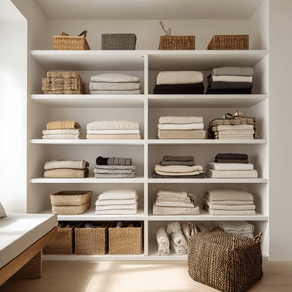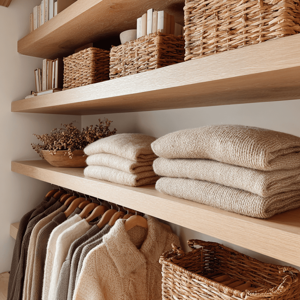 If wire shelves feel too utilitarian, this is a stylish upgrade. They’re perfect for baskets, folded knits, or decor accents.