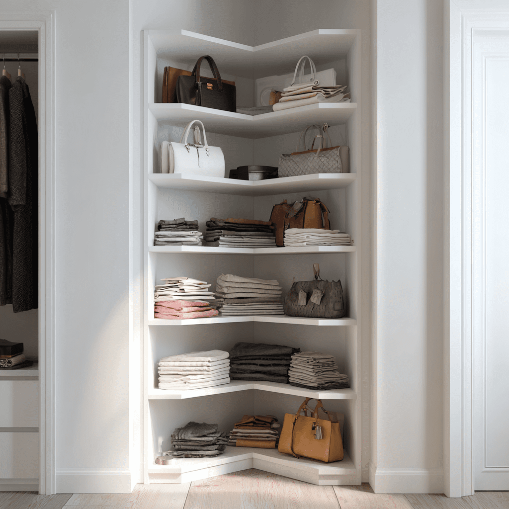 Corners are awkward, but they don’t have to be useless. Corner closet shelves turn dead space into functional storage without eating up walking room.