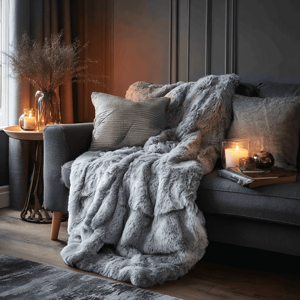 Choose a faux fur throw in a shade that complements your grey décor. This will enhance the stylish and inviting atmosphere of your space.