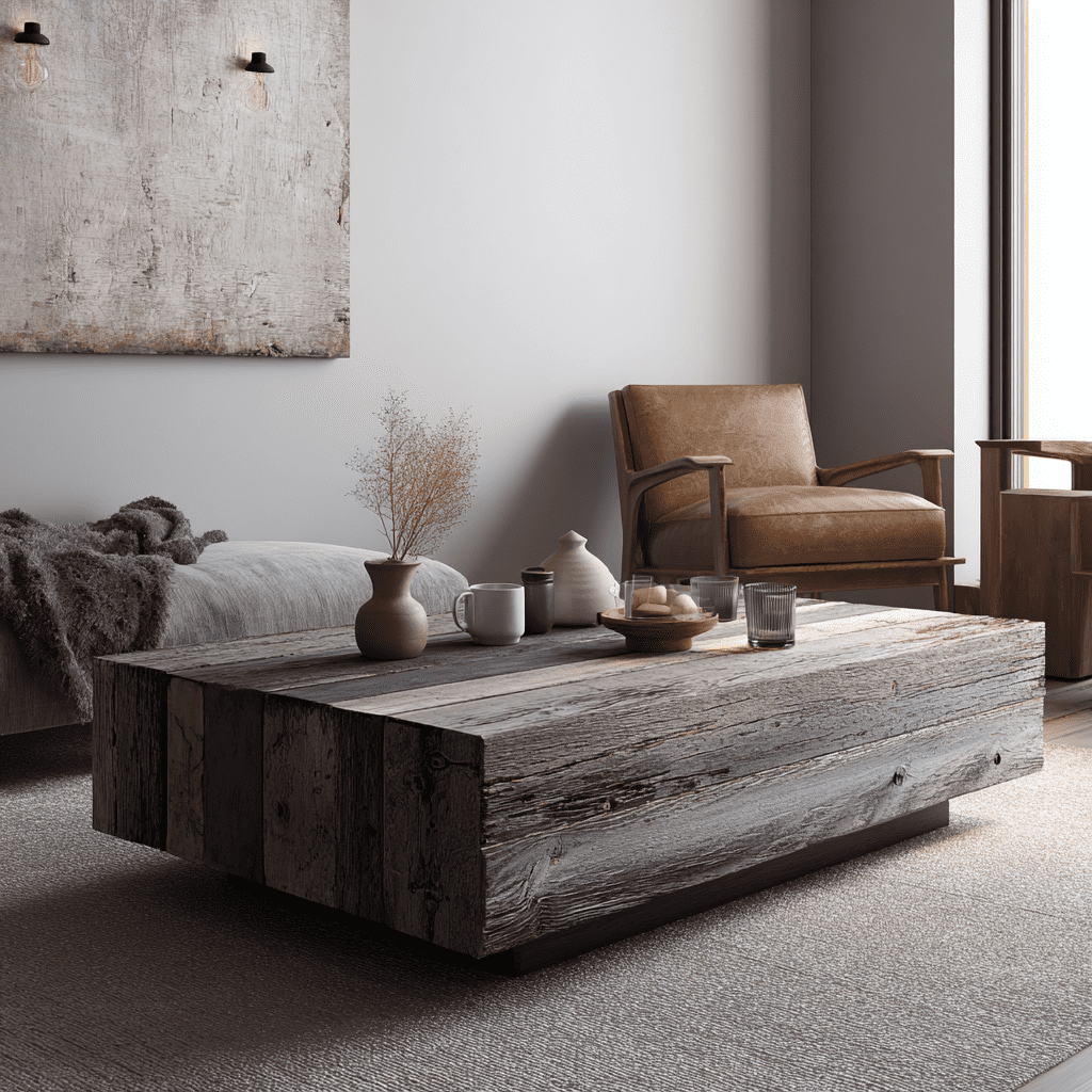A reclaimed wood coffee table can add charm to your cozy grey living room. These tables are made from recycled wood, which gives them a unique look with lots of character.