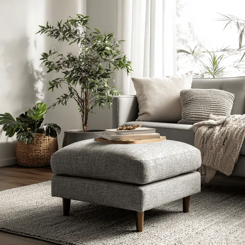 Experiment with different textures and shapes to find one that fits your decor. Whether it’s round, square, or rectangular, a grey ottoman adds a cozy charm to any living room.