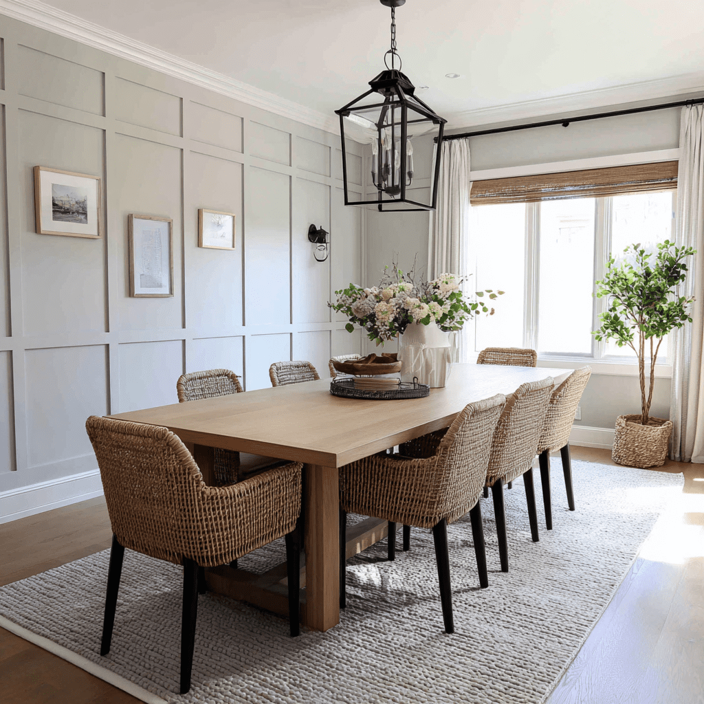 Board and batten adds structure and charm without overpowering your dining room.