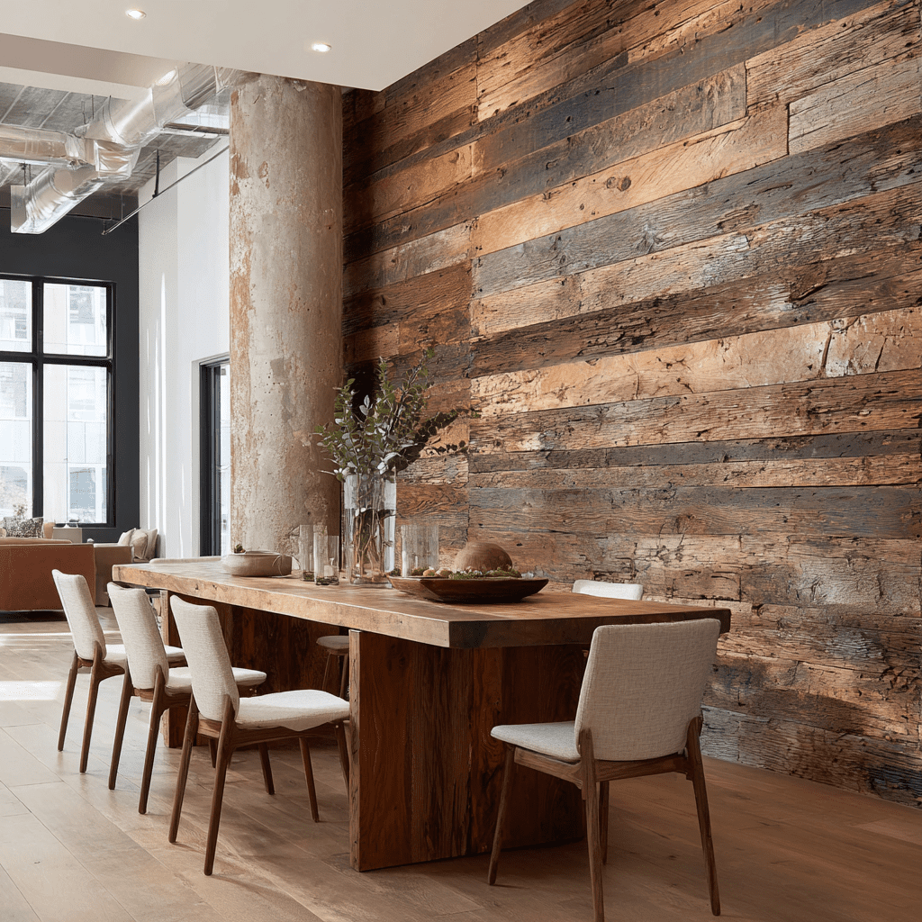 What materials can I use to create a textured accent wall in my dining room?