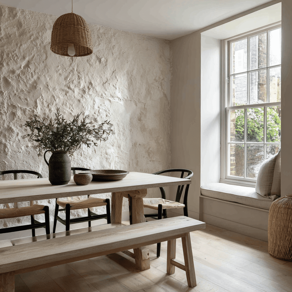 A textured plaster wall feels subtle but luxurious. It’s perfect if you want something different without going loud.