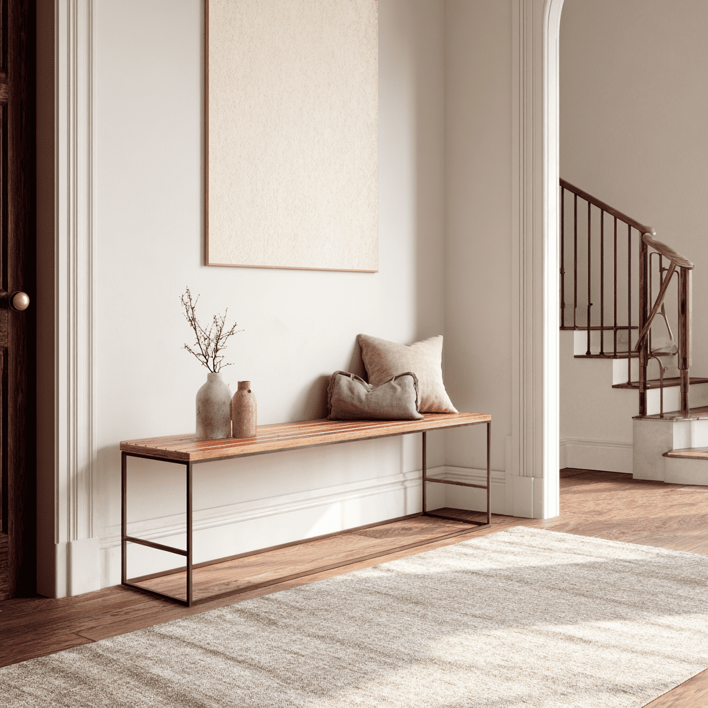 A slim console bench is perfect when space is tight but style still matters. It keeps things light and airy without overwhelming your entryway. Think minimal footprint, maximum impact.