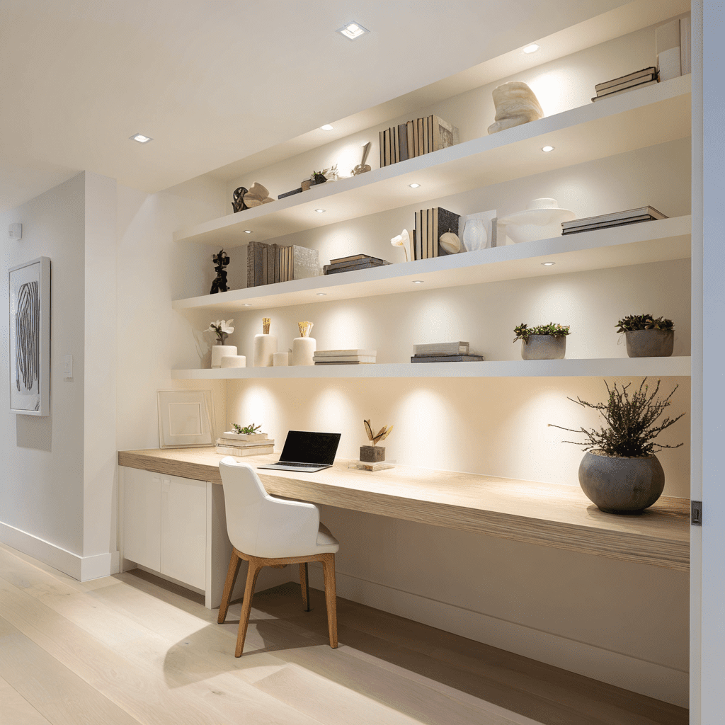 - Use built-in shelving to save space.
