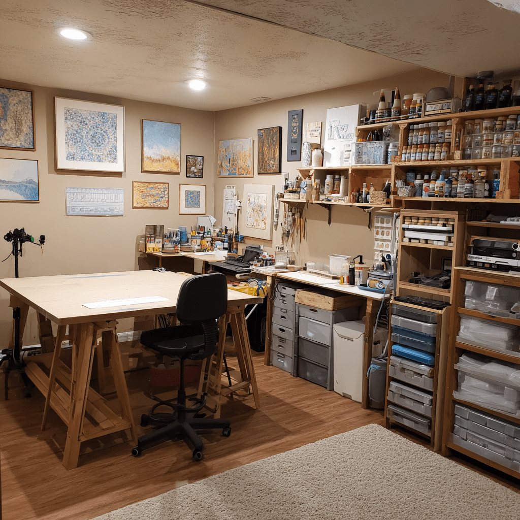 Crafting gets messy fast. A basement craft room gives you space to create without cleaning up every five minutes.