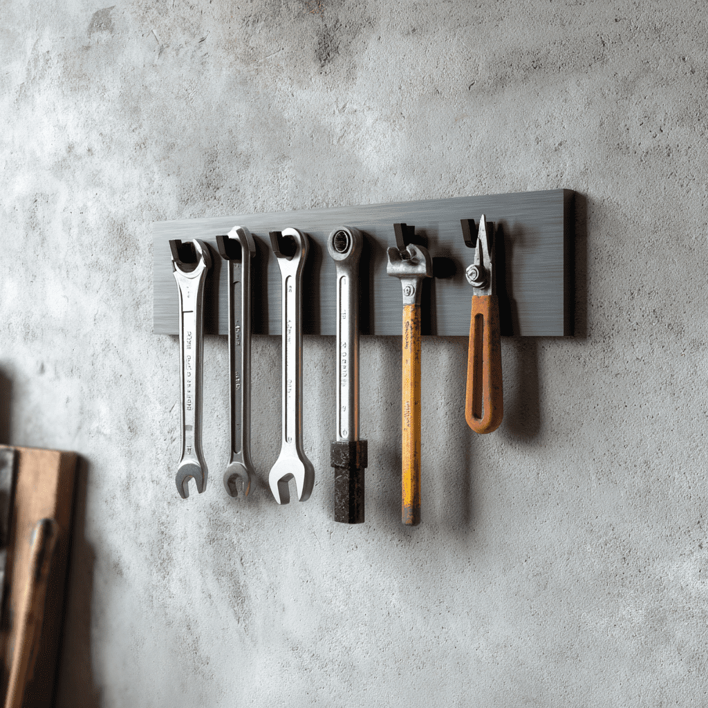 Magnetic tool strips are cheap, simple, and surprisingly effective. They hold metal tools securely on the wall and free up drawer space.