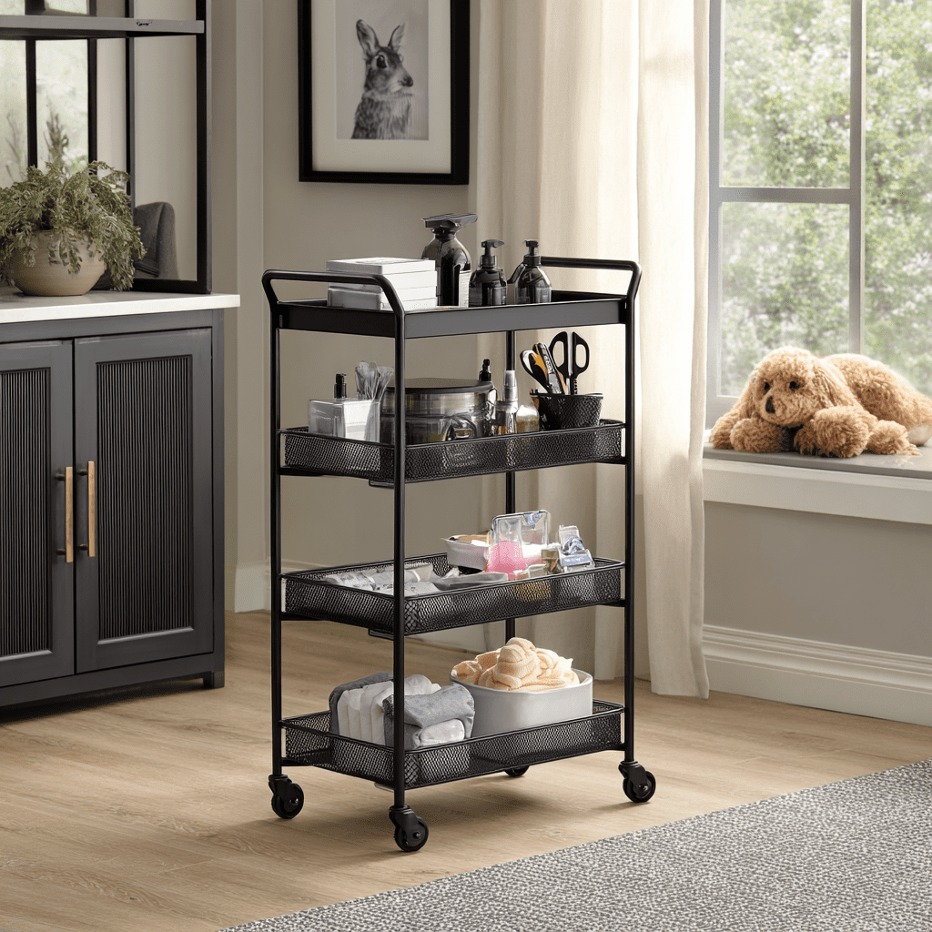 A rolling cart is perfect if your pet supplies are spread across rooms. Use it for grooming tools, wipes, toys, and cleaning sprays. Roll it wherever you need it.