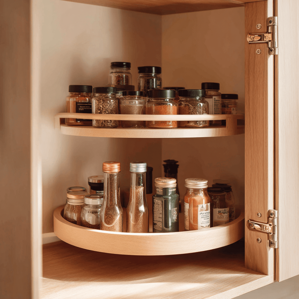 They let you spin spices, sauces, or condiments instead of knocking things over. FYI, they’re perfect for corner cupboards.