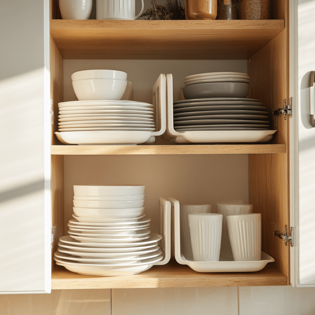They’re ideal for plates, bowls, or pantry goods that usually waste vertical space.