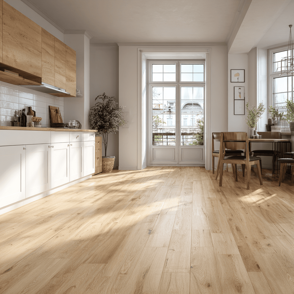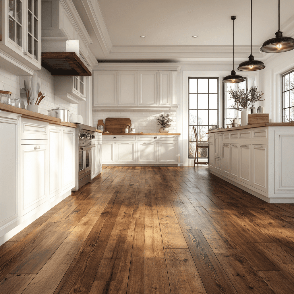 Hardwood planks bring warmth and charm into any kitchen. They’re perfect if you love a timeless look that blends with almost any décor style. Plus, they make the whole space feel more connected and homey.