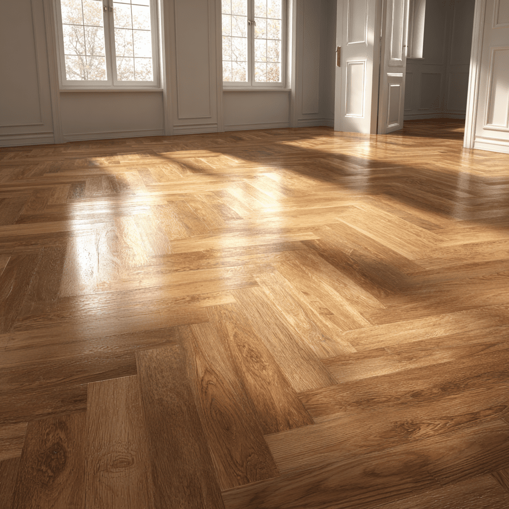 A herringbone wood layout instantly elevates your kitchen. It’s one of those classic patterns that feels fancy without being too loud. The geometric layout draws your eye and adds a stylish twist to traditional hardwood.