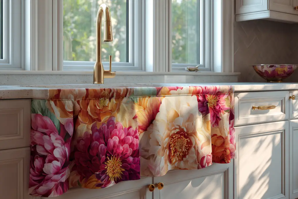 Pick fabrics that match your vibe, play with patterns, and don’t be afraid to try something bold. The sink area might be small, but it has major design potential.