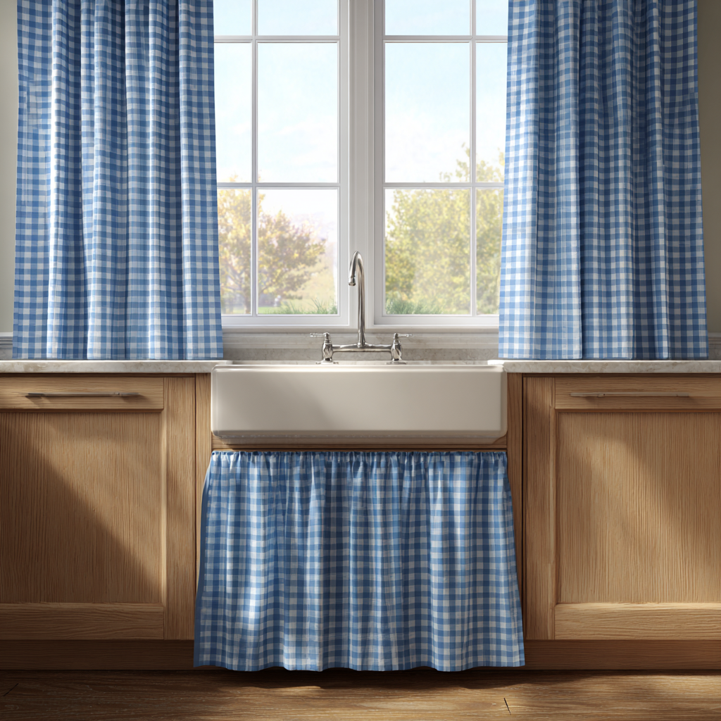 Gingham panels bring that sweet, farmhouse charm right to your sink. The tiny checks add pattern without overwhelming the space. Want something that feels nostalgic but still fresh? This is it.