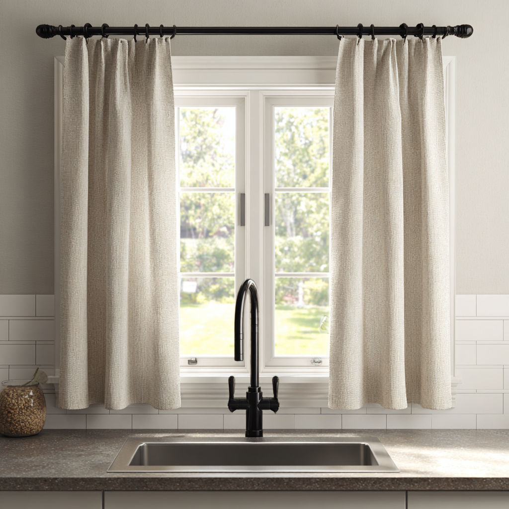 This works especially well in modern kitchens or small spaces where visual noise feels overwhelming. The fabric hangs smoothly and gives a tailored look.