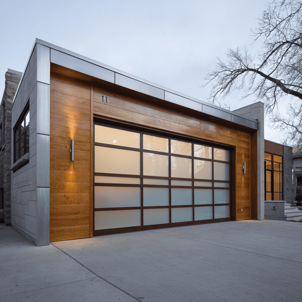 These panels are often set within an aluminum frame, similar to full-view glass doors, maintaining that clean, modern aesthetic. Polycarbonate is also generally lighter and more impact-resistant than glass, which can be a bonus. It’s a nice middle ground – you get the light without feeling exposed. Looks particularly cool when backlit from inside the garage at night.