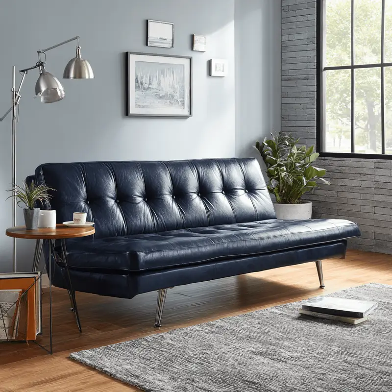 A leather navy convertible futon is a practical choice for any living room. It offers the sleek look of leather with the versatility of a futon.