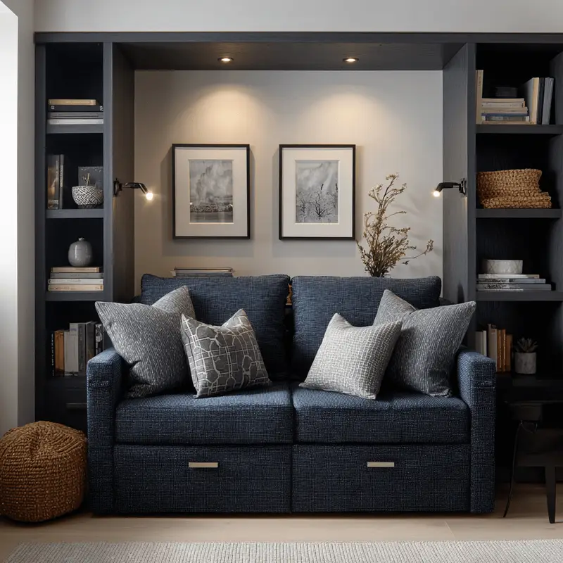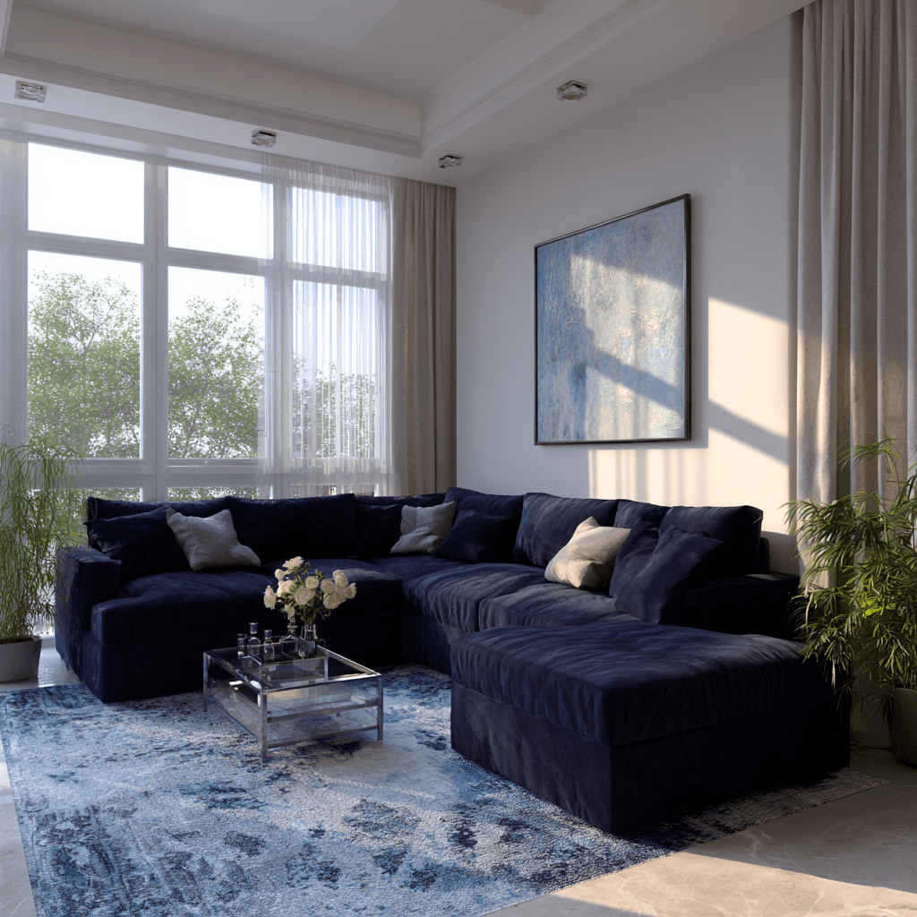 In small spaces, it’s important to keep things light. Choose a navy couch style that doesn’t overwhelm the room. Scandinavian designs with wooden legs or minimalist sectionals can provide a clean, modern look without sacrificing space.