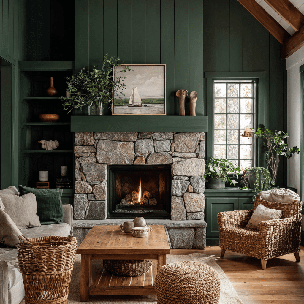 Forest green pairs nicely with wood tones and stone textures. Add some plants or nature-inspired decor to enhance the soothing vibe.