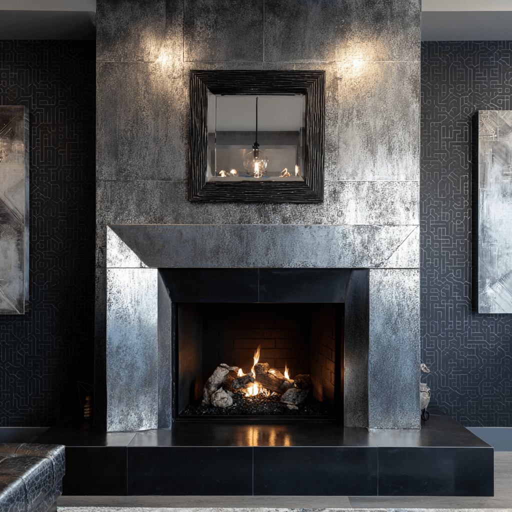 For extra impact, pair your metallic fireplace with contrasting dark walls or furnishings. The shine will stand out even more against a matte background.