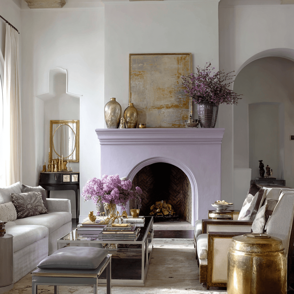 A muted lavender fireplace can bring a soft, elegant feel to your room. This gentle shade adds a touch of color without being too bold.