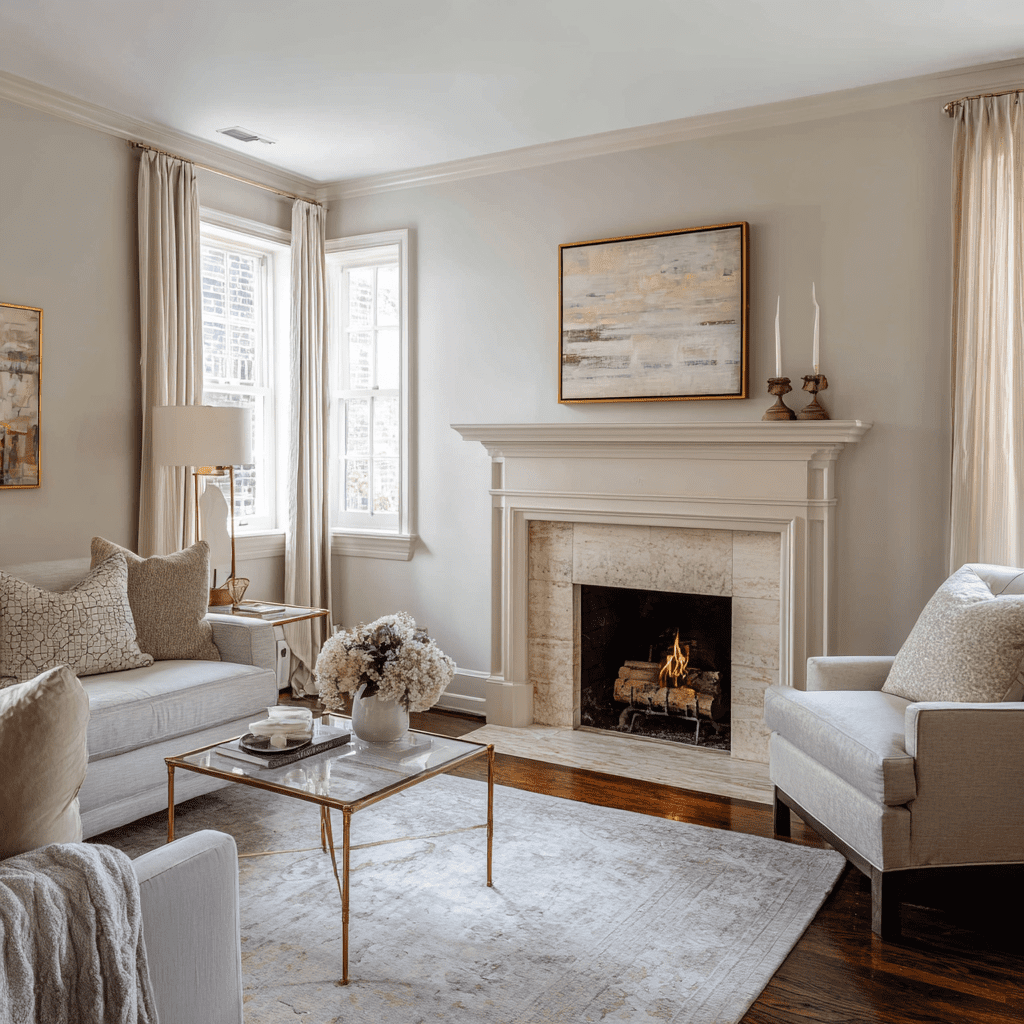 Consider adding white trim or a dark mantel for contrast. Beige complements many color schemes, making it a versatile choice for your home.