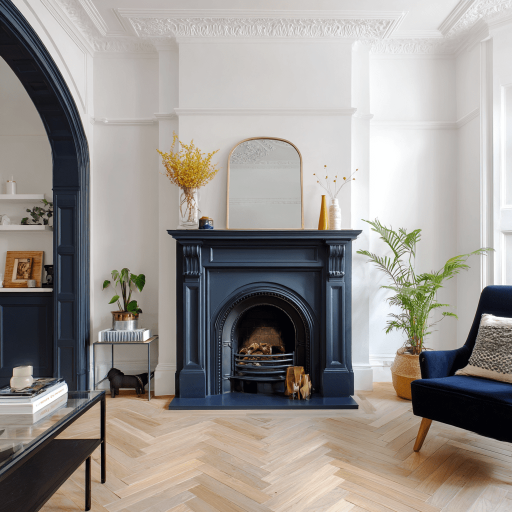 Navy blue paint can give your fireplace striking depth and sophistication. This rich color creates a bold focal point in any room. It works well with both modern and traditional decor styles.