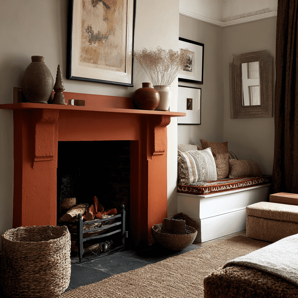 Terracotta paint can give your fireplace a cozy, sun-kissed glow. This earthy color brings warmth to any room, making it feel inviting and comfortable.