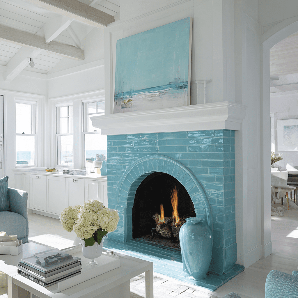 A bright blue painted fireplace can transform your room. This eye-catching color draws attention and creates a focal point.