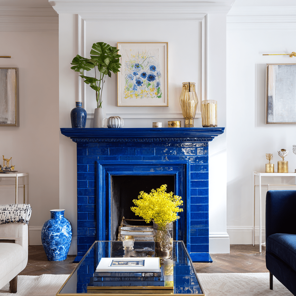 Cobalt blue can turn your fireplace into a stunning focal point. This rich, deep hue adds drama and sophistication to any room. Paint the entire fireplace surround in cobalt blue for a bold look.